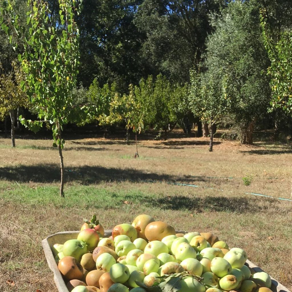 Laranjas, tangerinas, clementinas, figos, marmelos, kiwis, dióspiros, maçãs, pêssegos e pêras de várias qualidades, nectarinas, ameixas brancas e pretas, uvas, romãs, cerejas! Cada época do ano oferece a sua especialidade, uma delícia apanhada directamente da árvore, mas fazemos também doces, compotas, chutneys e licores. Como na horta, usamos apenas estrumes animais e produtos naturais para proteger as plantas e estamos na fase final para obter o certificado de produção biológica.